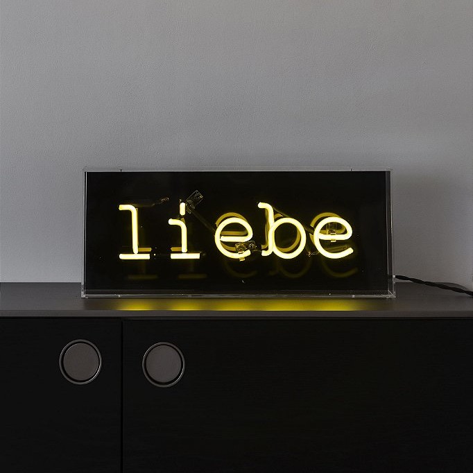 Luminária de parede ou mesa com caixa em acrílico transparente e preto, com transformador embutido na própria caixa.