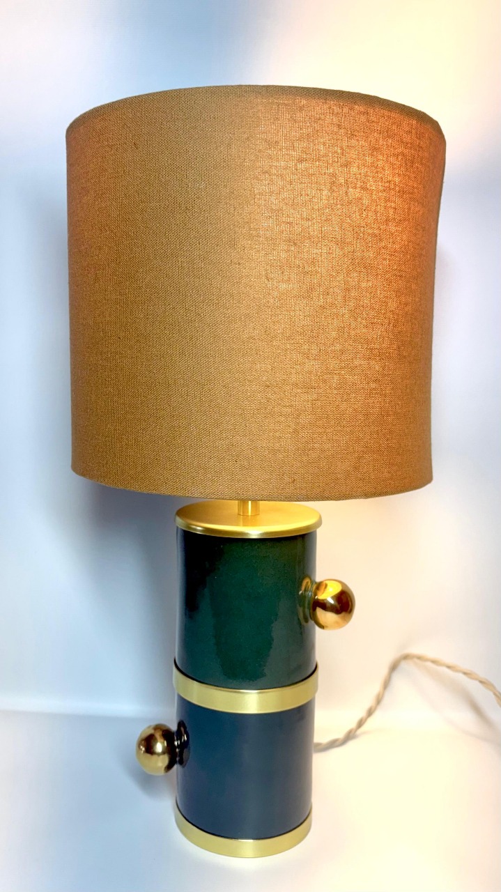 Abajur com base de cerâmica pintada à mão, fruto de uma collab com a artista Marô Antunes. Possui cúpula em tecido, lâmpada de LED e fio revestido em tecido bege, com 1,80 m de comprimento.