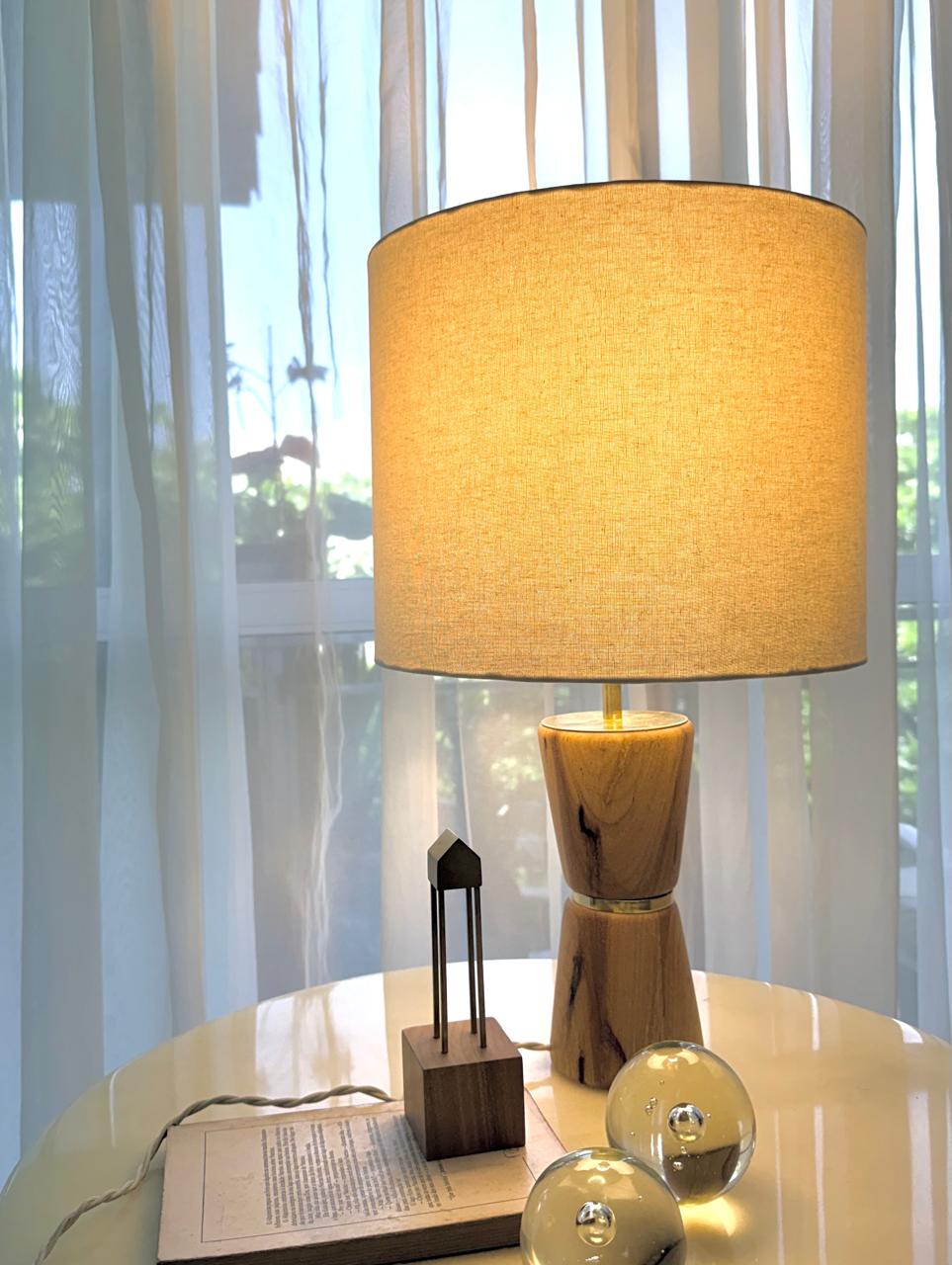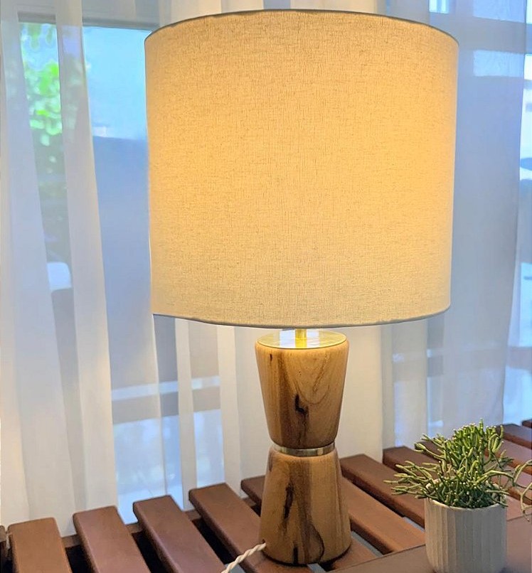 Medidas: H 51 cm | D 31 cm Fio: 180cm - Bege Lâmpada: Lâmpada de led Cúpula: Revestida em Linho Base : Produzida em madeira natural de Freijó