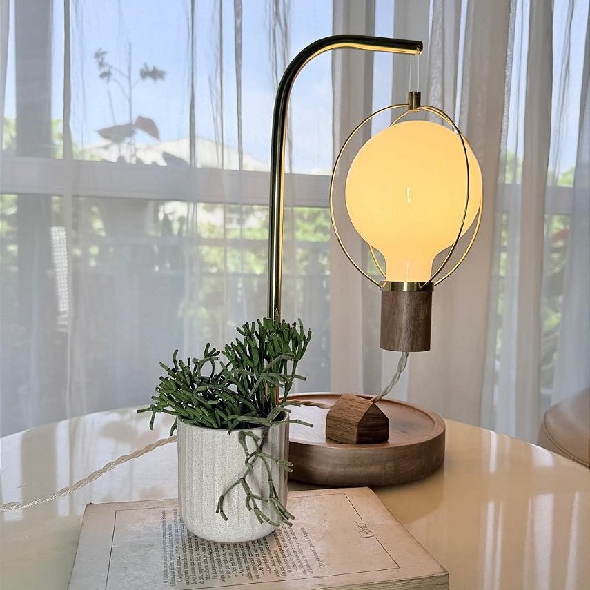 Medidas: H 39 cm | D 20 cm Fio: 180cm - Bege Lâmpada: Filamento em led Base: Em Madeira e haste em inox Bocal: Em Madeira